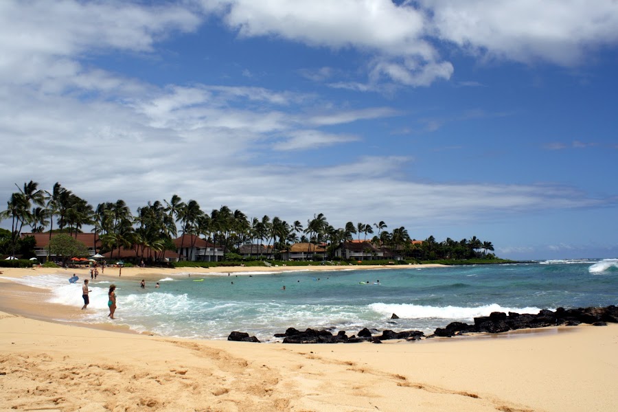 The minute we touched down in Kauai, things just slowed down. The first thing I noticed about Kauai was the air. It’s seriously magical. There was just the right amount of breeze and humidity. The temperature was perfect. We picked up the rental car and started for Poipu. Once we took the turn towards Poipu, we knew we were in a special place. The most gorgeous trees lined the street, all the way to the beach. All I can say is Kauai was everything I thought it’d be, and MORE. When people say that Hawaii is where happiness lives – they weren’t kidding! We checked into our hotel, ordered a Blue Hawaii and spent the rest of the night catching up with Pam. Maybe Kauai was such a happy place for me because I got to see my sister!! ;)