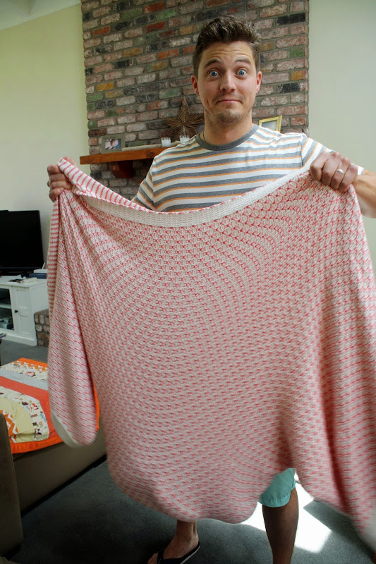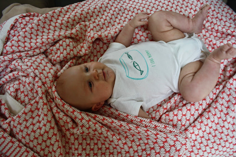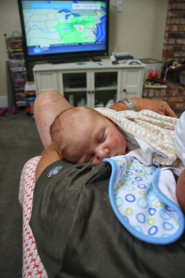 Lately little Jace has been fighting the mid-day nap. He likes to stay awake for as long as he can. When it gets to nap time, he usually starts smiling and talking {more like babbling}. He doesn’t like the swaddle in the middle of the day. He doesn’t like the rocking chair. So, we created a swing out of a cozy couch blanket and swung him until he got sleepy enough to cuddle. Once he gets comfy, he usually likes one of us to breathe on his face. Which I weirdly love to do, hahahaha. Oh, well. At least we’re weird together. And it worked, because he went down for a nap! Success!