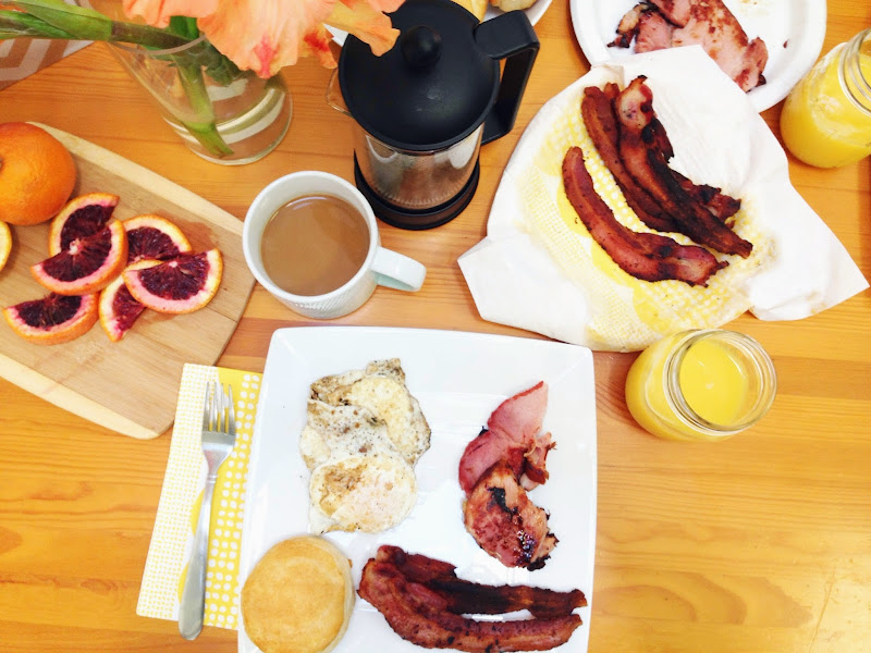 We’ve been catching up Dexter in the evenings to wind down and the opening credits get us every time. It is the best intro I think ever created for a series. Not only does it fit the theme of the show perfectly, but it also makes the breakfast look so delectable, while deadly. It had us mesmerized once again so we went out and got all the ingredients for a Dexter breakfast and went to work. Oh, and we did this on Mother’s Day. It was just what I wanted — a lot of meat and protein!