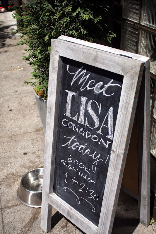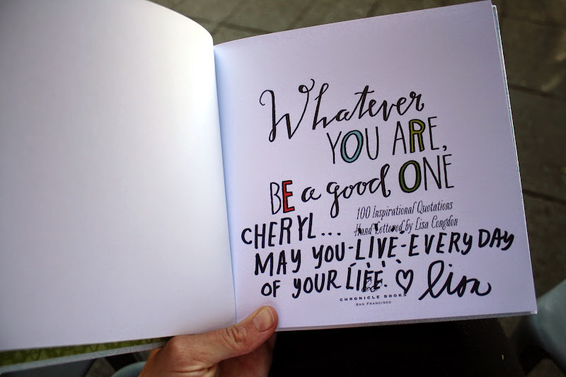 After Temescal Alley, us girls zipped up a few blocks to College Ave. for a book signing with illustrator and blogger, Lisa Congdon {and her dog Wilfredo, too!}. She’s illustrated for biggies like The Museum of Modern Art, Martha Stewart, The Land of Nod, The Obama Campaign and more. She has some mad hand lettering skills, among so many others. And I got to see her hand lettering in action as she signed my copy of Whatever You Are, Be a Good One — and with a sharpie! Lisa is down-to-earth and warm and flat out a happy person. So inspiring!
