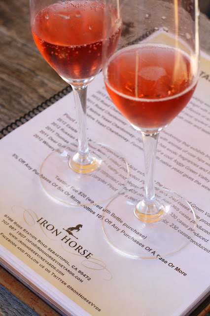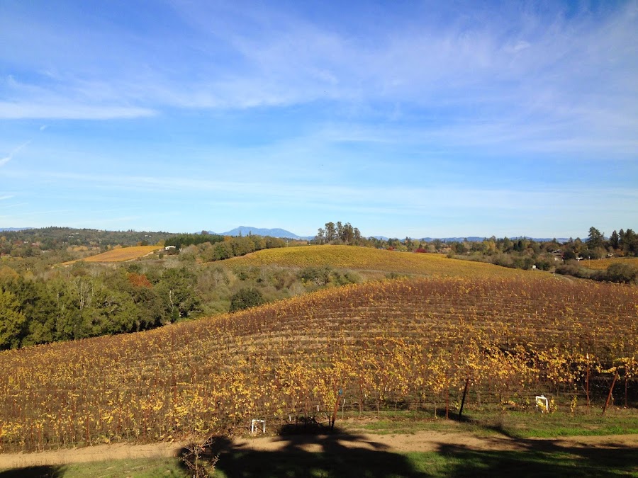 Then things got awesome. At Iron Horse Vineyards. By then, the crowd was getting “bubbly” you could say. Lots of people at this one, and what a gorgeous vineyard and patio tasting bar. Breathtaking view of the fall colors in the vineyard. By far the best atmosphere of the three. We decided on the sparkly flight and were in bubbly heaven. My favorite was the Rose Brut – I basically threw my debit card at them for 2 bottles for us. Saving it for New Year’s!