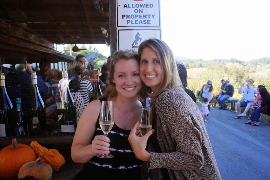 On a brighter note, I had the most amazing Fall-infused weekend last weekend with my best friend, Heather. Last Saturday morning we started off early, but not before some ocean rolls, peppermint mochas and a quick drive to meet Rob to get my wallet {that I forgot}. Sort of need your ID to drink wine, right? {Oddly enough, I was never carded, now that I think of it. Funny how wrinkles can make you look older;)}. As soon as we got in the car we started blaring the Christmas music. No matter that it was November. It’s already that time of year for us. I put together a slightly flexible itineary for us for our stroll through the Russian River Valley of pinto noirs, chardonnays and sparkling delights. And of course took lots of pictures: