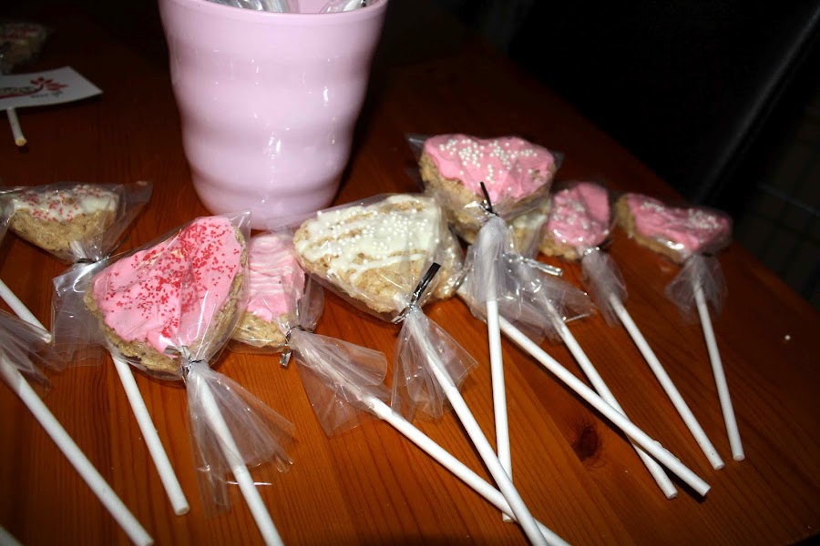Make your rice crispy treats, flatten out and using your heart-shaped cookie-cutter, cut out some hearts!