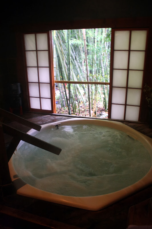 I wanted to treat my sister to a little spa day while she was here, and went looking for the right place. I noticed on Yelp that the Tea House Spa had some amazing reviews so I booked us a couples package, which included a 60-min massage each, tea and an hour in our own private sauna/hot tub suite overlooking the bamboo garden. And all I can say is WOW, what an experience!! Our massages were incredible, as was the sauna/hot tub room. We ordered the caramelized pear tea to enjoy in our suite, and listened to the rain come down outside while we soaked our muscles further in the hot tub. We kept giggling with happiness . . . I whipped out the camera to document our fun. If you’re ever in Santa Cruz, I HIGHLY recommend this spa. So clean, and relaxing, friendly, and cost-effective. I personally had the best back massage I’ve had in a long time. I’ll definitely be going back. My back pain is only to get worst I imagine, so I should just make this massage/hot tub thing a regular outing for myself, right? ;)