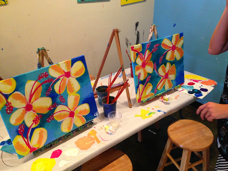 Us Joy ladies got our paint on in Scottsdale last weekend while I was in town. We had such a blast. The whole paint and wine night has really caught on in the Phoenix area. Surely you’ve heard of it or have a brush bar of some kind near you! My sister and I wanted to do something special with my Mom while I was home, so we booked a morning date at the Brush Bar in Scottsdale for some mimosas and hawaiian flowers. We couldn’t stop smiling while we painted and took in the atmosphere. Pretty sure we’re going to go back over the holiday. My mom definitely did the best. She has some mad blending skills ;)