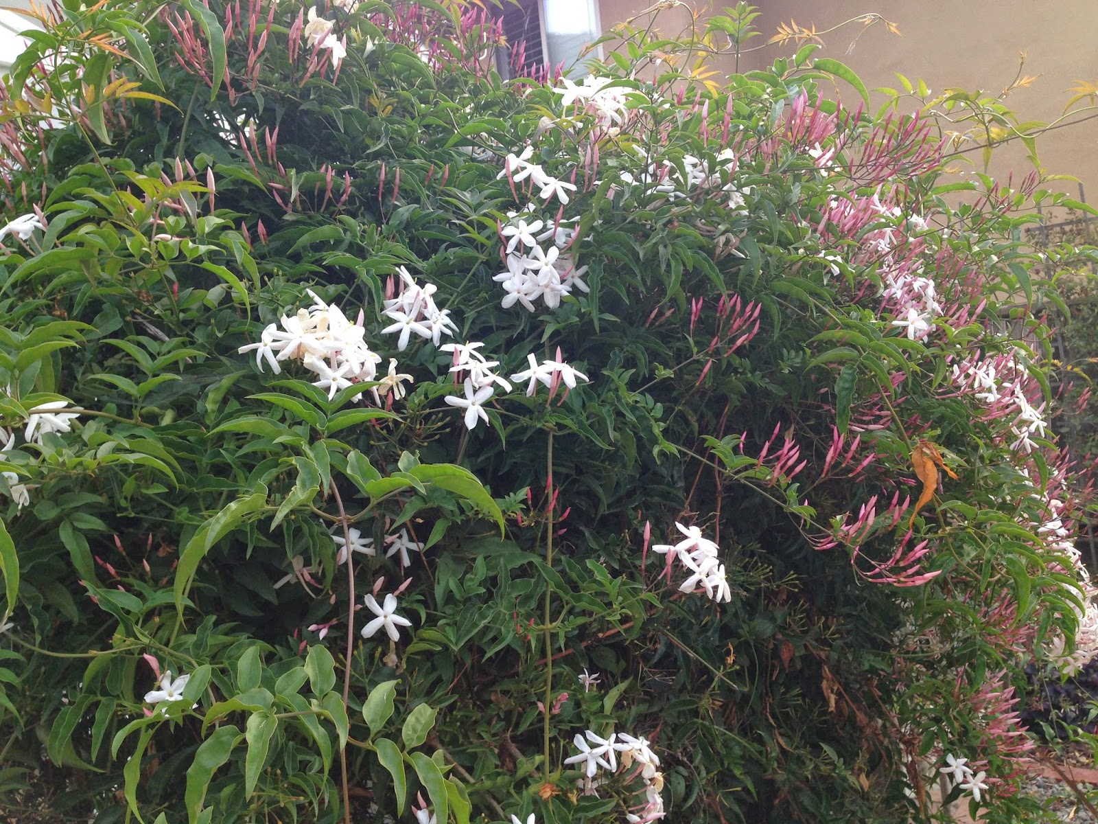 {The jasmine in our back yard grew pretty well over the summer. Covered the stench of dog in the back, for a few minutes.}